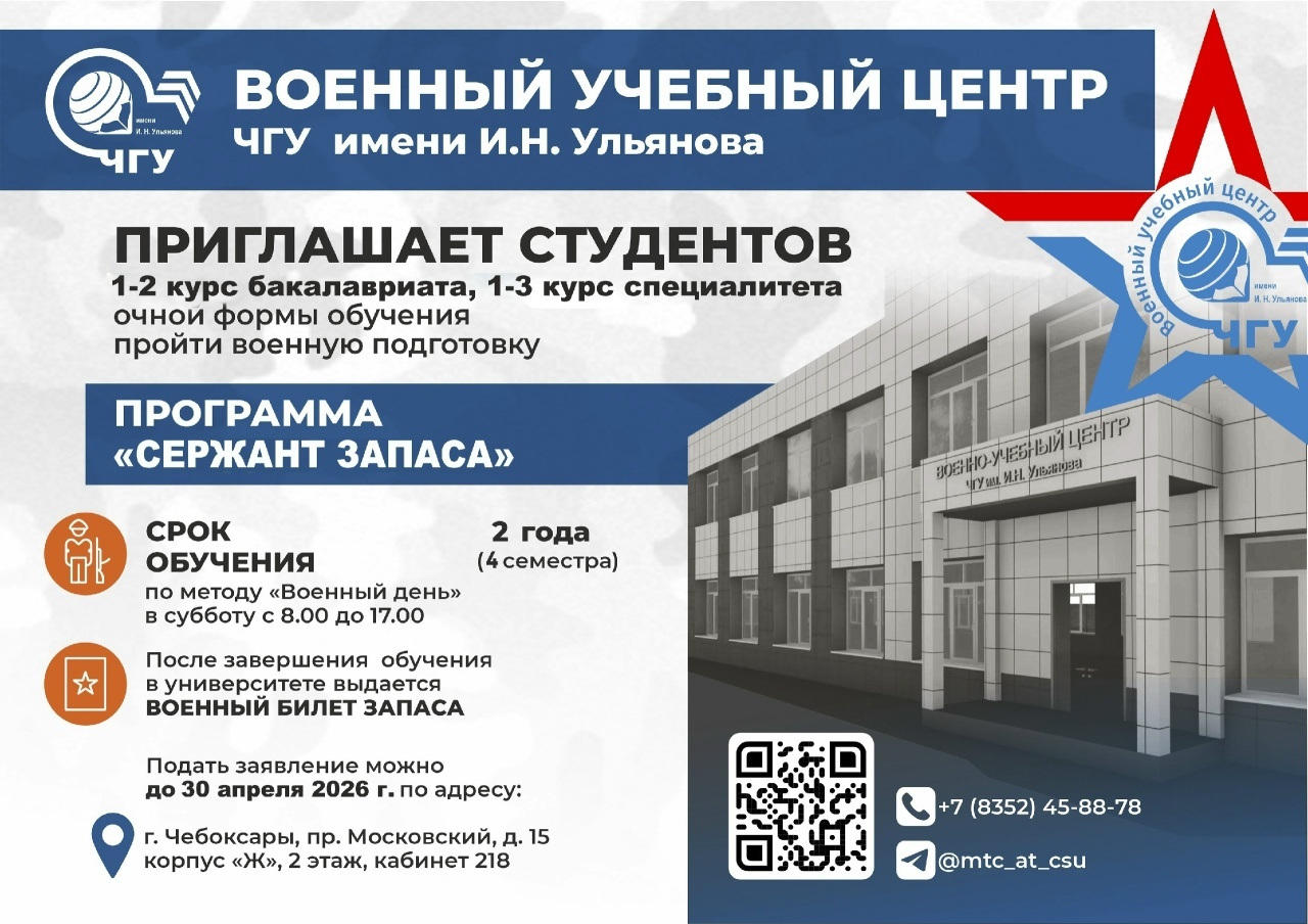 Военный учебный центр ЧувГУ начинает приём заявлений на обучение.