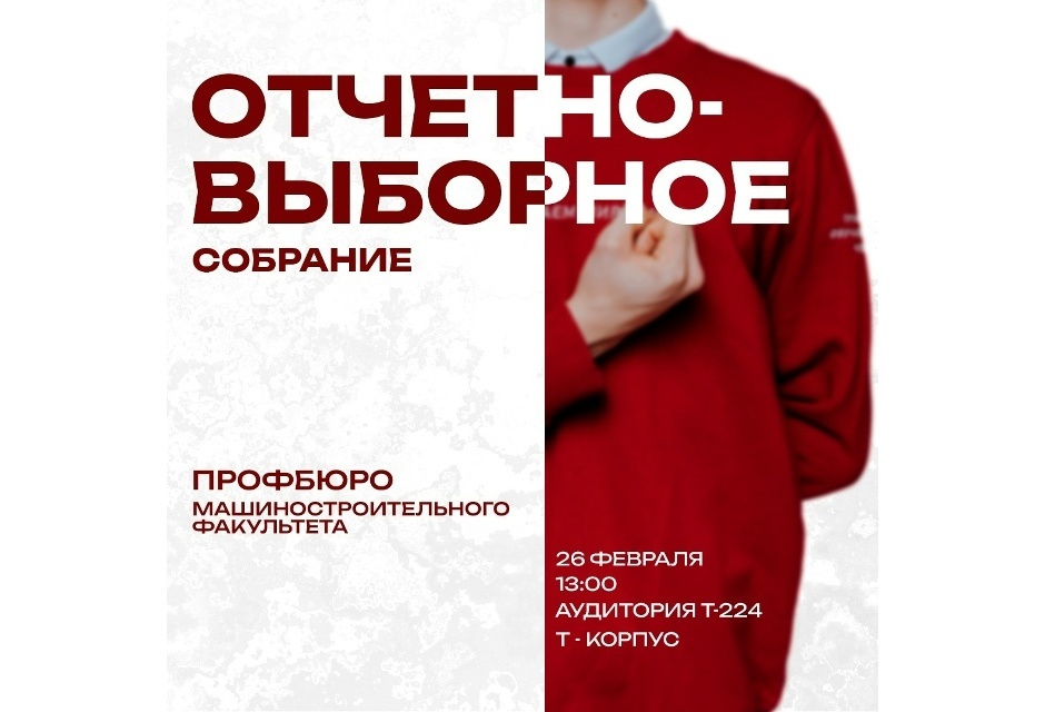Приглашаем на отчетно-выборное собрание профбюро. Это не просто формальность: вам предстоит выбрать председателя, от которого зависит развитие факультета, а также оценить результаты работы действующего руководителя.